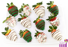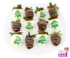Hand-crafted with fresh fruit, this delicious fruit arrangement includes white chocolate covered strawberries with sprinkles, milk chocolate strawberries with green drizzle, pineapple stars, & a chocolate covered pineapple tree!