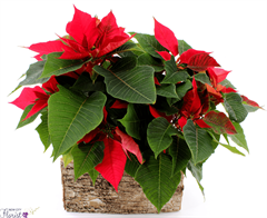 Beaitiful Poinsettia with greens. Poinsettia plants may vary in color.